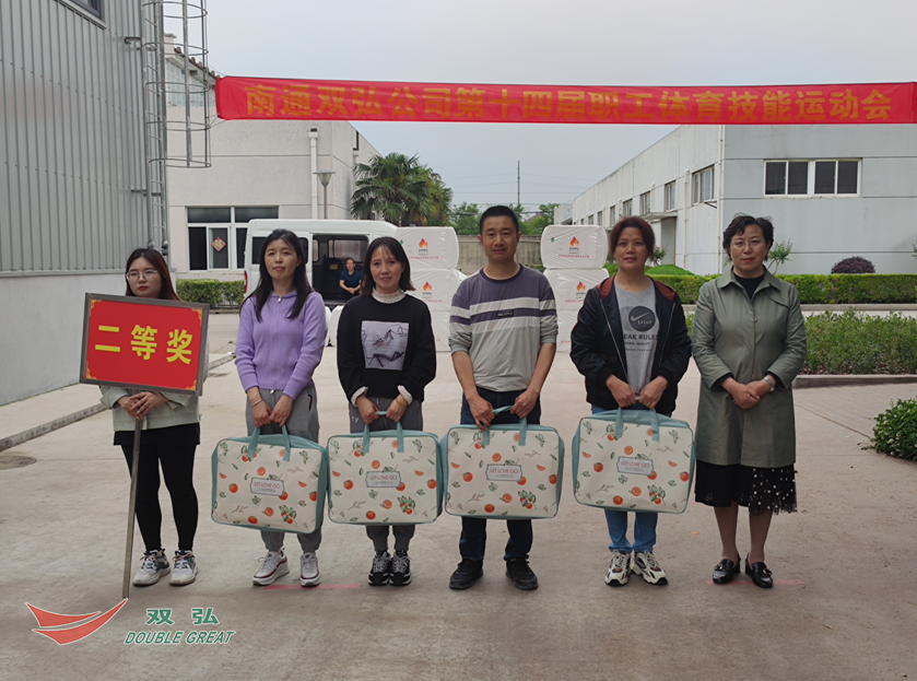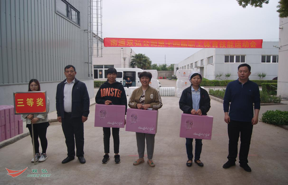 A fim de enriquecer a vida espiritual e cultural dos funcionários, promova o espírito de trabalho duro, progresso, saúde e harmonia, aprimorar a coesão e a força centrípeta da maioria dos funcionários e promover o desenvolvimento de alta qualidade da empresa, Em 6 de maio, a Nantong Double Great Textile Co., Ltd. realizou os 14º jogo de habilidades esportivas de funcionários. Zhang Guangyun, vice-presidente de tempo integral da Federação de Sindicatos de Qutang Town, e Yang Yang, presidente da Double Great Company, participaram do evento. Mais de 160 funcionários da linha de frente de vários workshops da empresa participaram das competições em vários eventos.