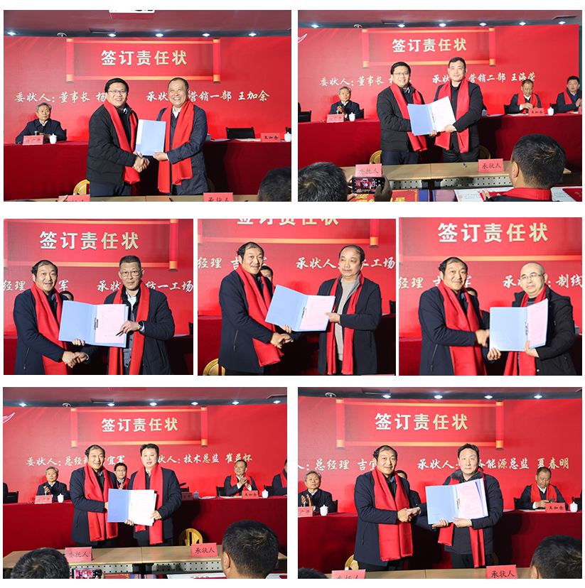 Na reunião, o chefe do departamento de marketing assinou uma carta de responsabilidade de marketing com o presidente Yang Yang, e os chefes do workshop de produção, tecnologia, equipamentos e outros departamentos assinaram a tarefa de produção e o trabalho -chave direciona cartas de responsabilidade com o gerente geral Ji Yijun, respectivamente.