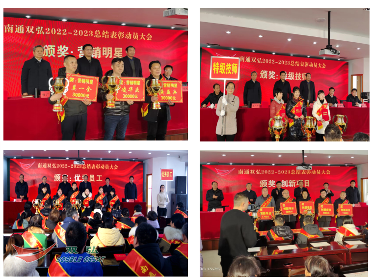 A diligência traz no início da primavera e é hora de seguir em frente. Em 8 de fevereiro, a Nantong Double Great Company realizou uma grande reunião para resumir e elogiar o ano 2022 e mobilizar o trabalho para 2023. Os elogios coletivos avançados, indivíduos avançados, estrelas de marketing, QC Achievement Prêmio, que atendem a pessoas que atendem a pessoas que atendem a pessoas que atendem a uma equipe, os funcionários de uma equipe, os funcionários de uma equipe, os funcionários do meio-campo.